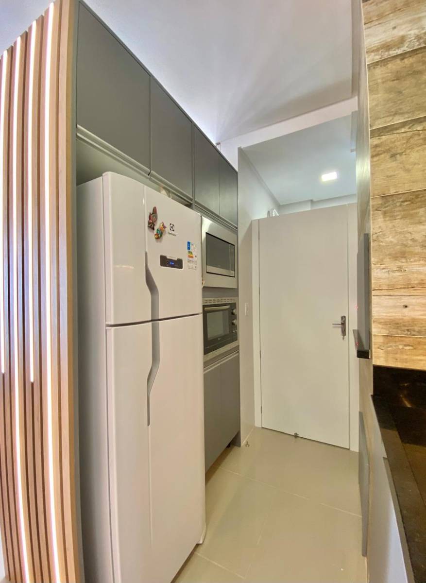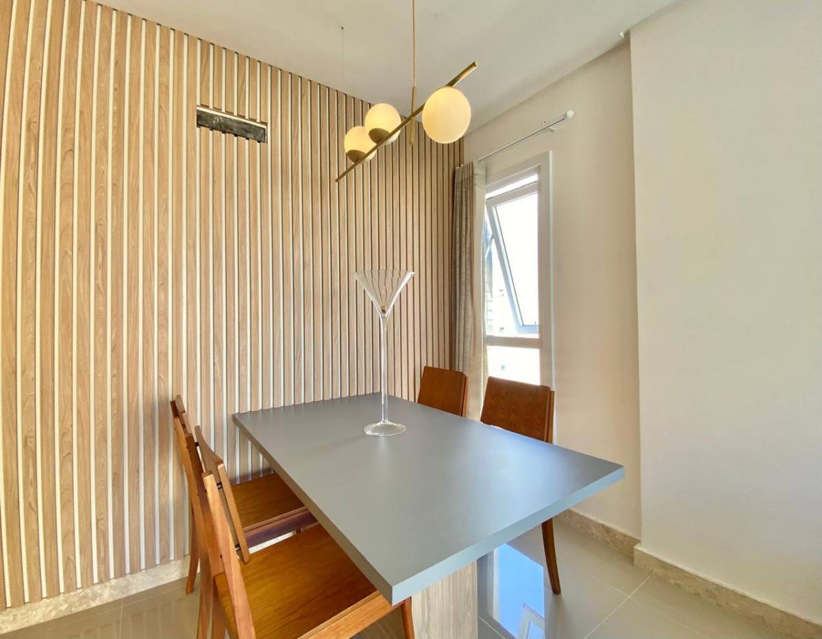 02 dormitórios com suíte e banheiro social, living integrado, cozinha com lavanderia e churrasqueira, sacada aberta com porta janela, vista linda para serra, uma vaga na garagem. Edifício de alto padrão, academia, jacuzzi e salão de festas.