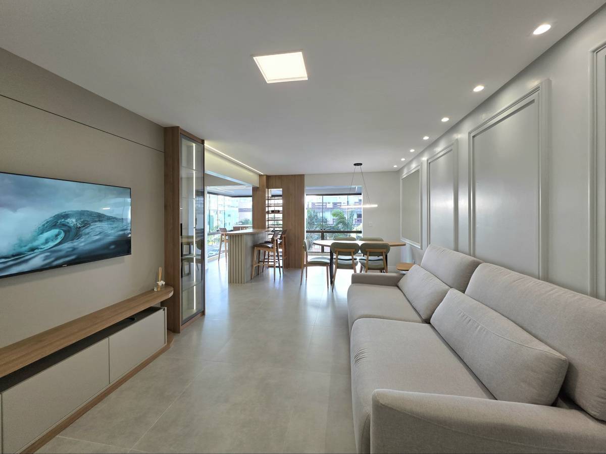 De frente pra avenida encontra-se este belissimo apartamento de 3 amplos dormitórios sendo um suíte, banho social, área de serviço separada, cozinha, sala de estar e jantar bem definidas, sacadão de frente com churrasqueira, vista para o mar, praça e serra, mobiliado, box e deposito. Edifício muito bem construído, zeladoria permanente, portão e porteiro eletrônico, ótima localização, junto a todos os recursos.