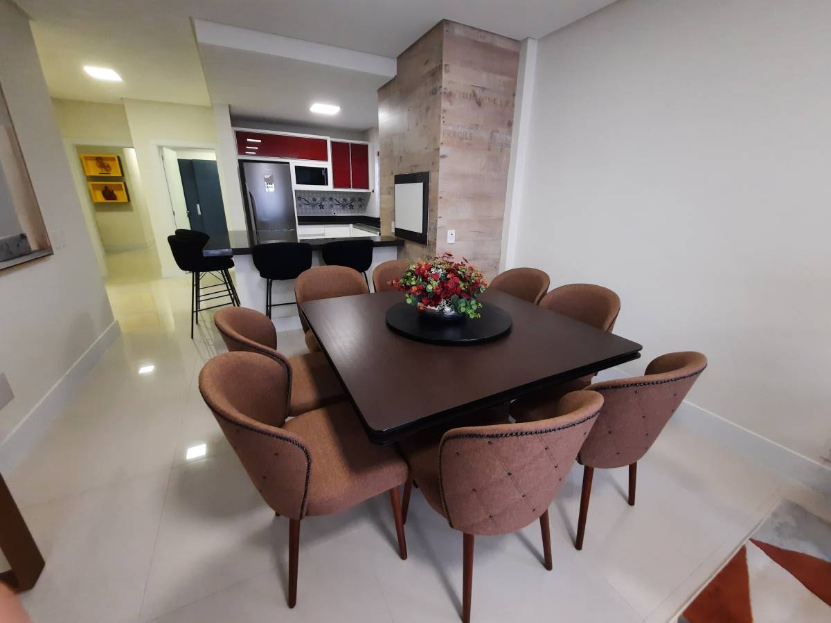 UM APARTAMENTO ESPETACULAR. Composto por 3 dormitórios, um com suíte, lavabo, mobiliado e decorado, vista para o mar e serra. Um prédio imponente e sofisticado com uma arquitetura diferente com pele de vidro na fachada e com um ângulo crescente. Sem falar na piscina externa ampla com acesso para o salão de festas. Hall de entrada com pé direito duplo e com muitos detalhes personalizados e exclusivos. Dois elevadores de última geração, gás central e demais comodidades.